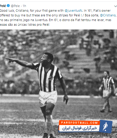 رونالدو که در تابستان امسال و با مبلغ ۱۰۰ میلیون یورو از رئال مادرید راهی یوونتوس شد، امروز برای اولین بار و در دیدار مقابل کیه وو به صورت رسمی برای این تیم به میدان خواهد رفت. پله که مدعی شده در گذشته از یوونتوس پیشنهاد داشته، برای او آرزوی موفقیت کرد.