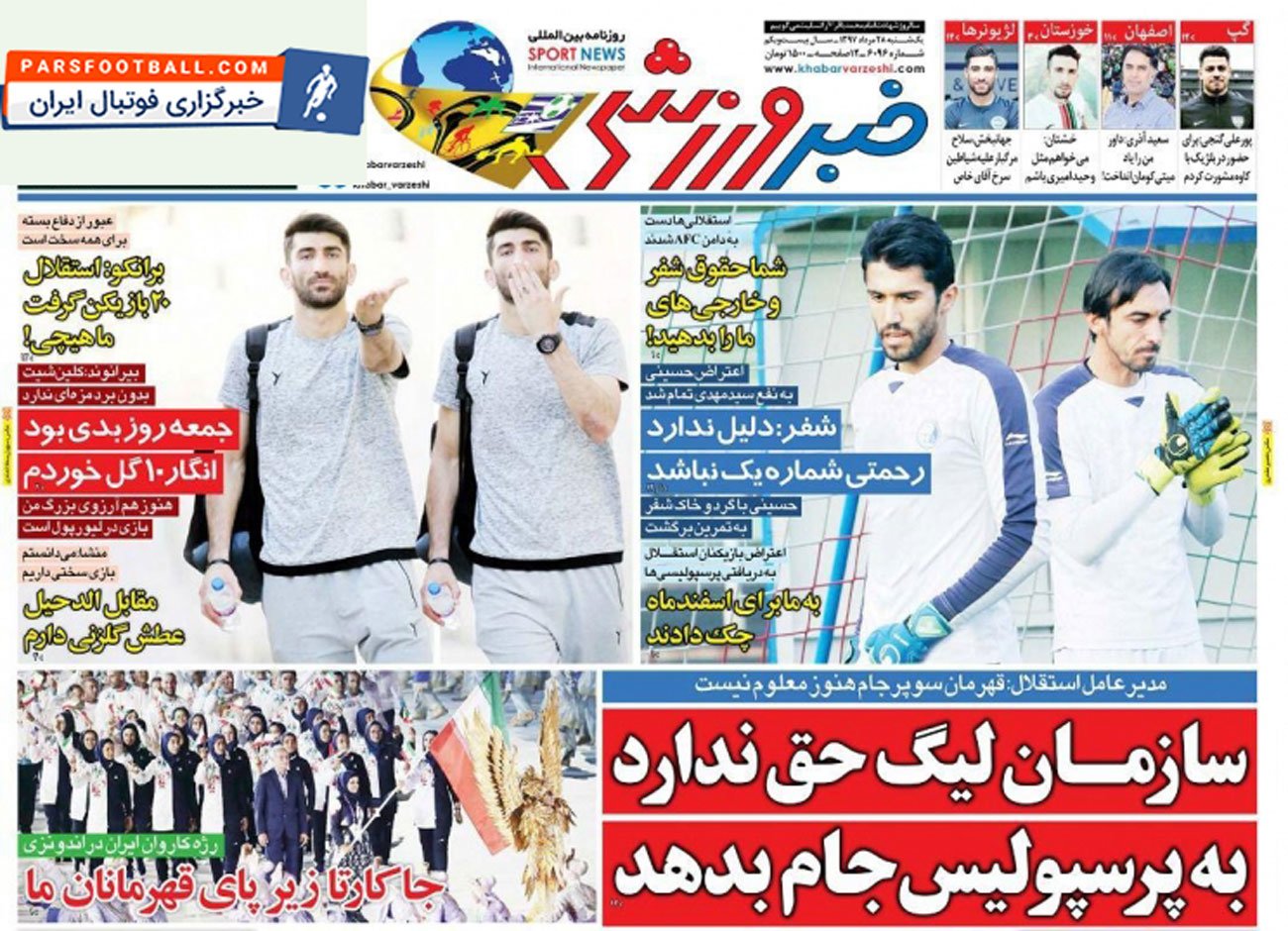 عناوین روزنامه خبر ورزشی روز یکشنبه ۲۸ مرداد به شرح زیر است :