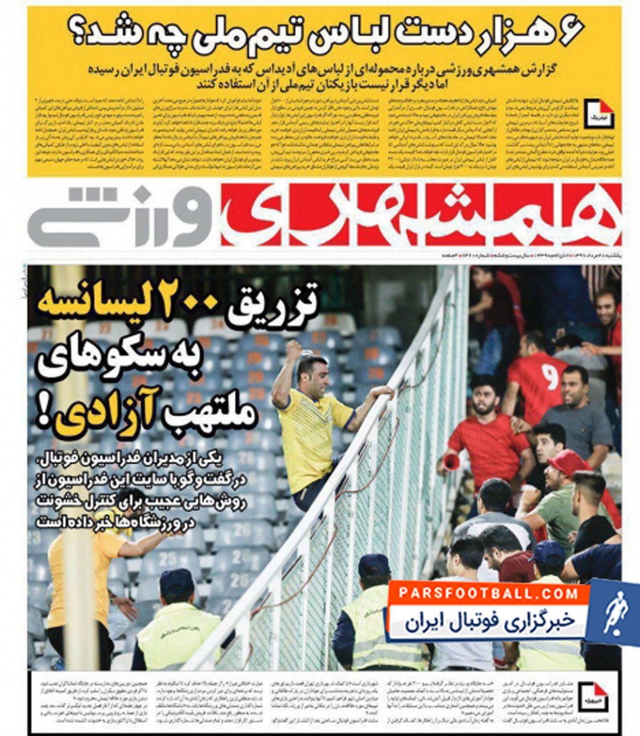 روزنامه همشهری ورزشی ، یکشنبه ۲۸ مرداد ؛ تزریق ۲۰۰ لیسانسه به سکوهای ملتهب آزادی !