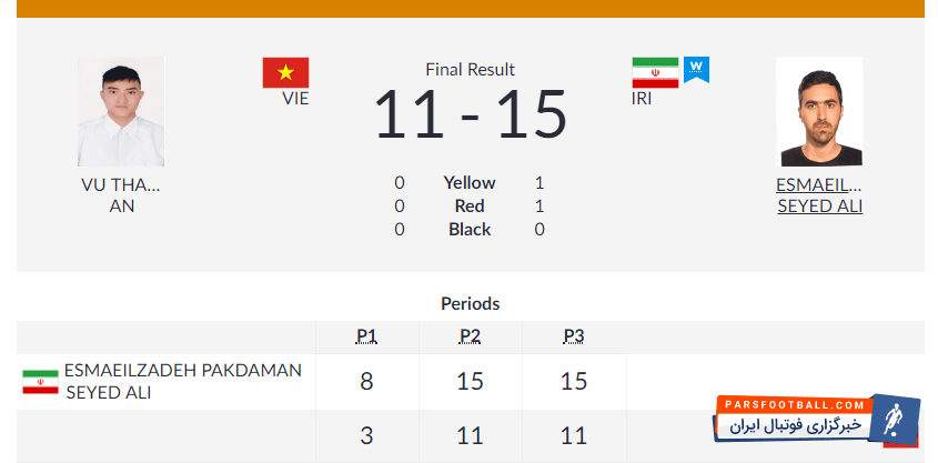 علی اسماعیل زاده شمشیرباز ایران موفق شد در بازی های آسیایی جاکارتا نماینده ویتنامی را شکست دهد.