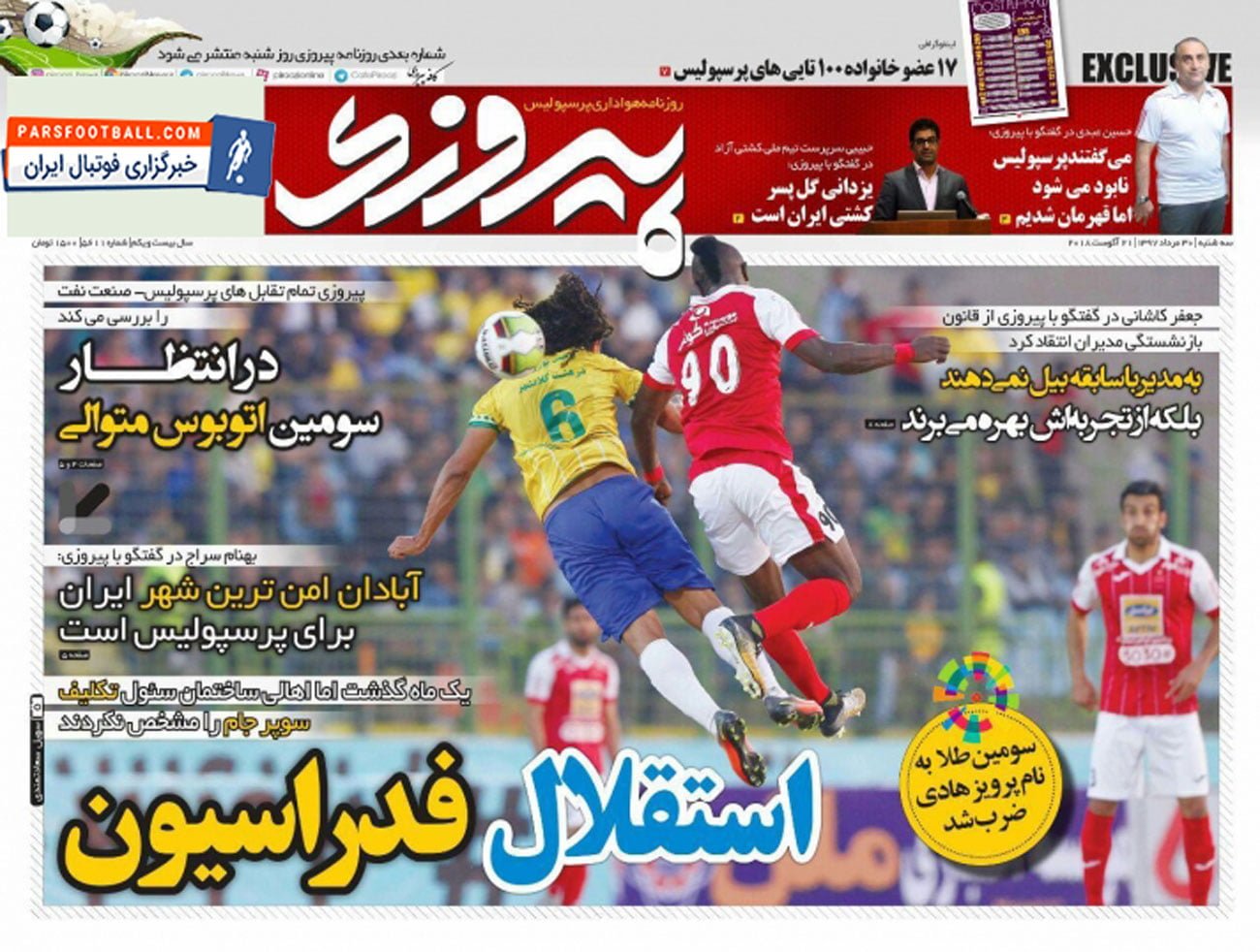 روزنامه پیروزی ، سهشنبه ۳۰ مرداد ؛ استقلال فدراسیون !
