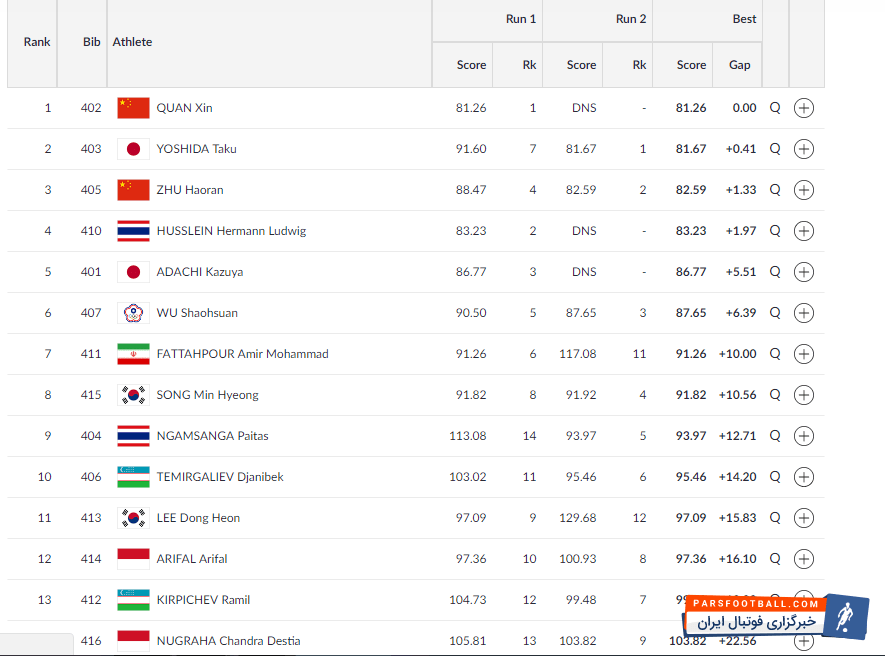 امیر محمد فتحی پور نیز با قرار گرفتن در رتبه هفتم گروه خود به نیمه نهایی صعود کرد.