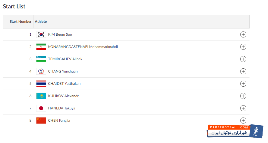 در بخش مردان نیز، محمدمهدی کنارنگ با قرار گرفتن در رتبه دوم گروه خود به فینال راه یافت.