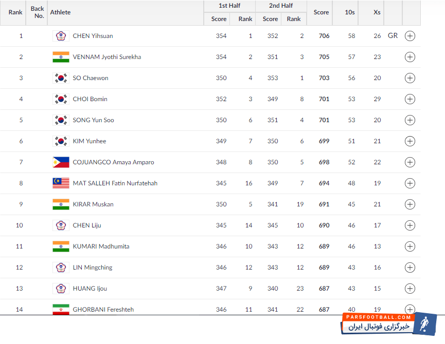 مرحله مقدماتی و تعین رتبه تیراندازی برگزار شد که فرشته قربانی، مینو عابدی، پریسا براتچی و راحله فارسی نمایندگان ایران با قرار گرفتن در جایگاه های ۱۴، ۲۱، ۲۲ و ۲۶ به مرحله حذفی بازی های آسیایی جاکارتا صعود کردند.