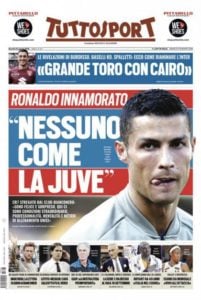 روزنامه توتو اسپورت ، پنجشنبه ۲۳ آگوست ؛ رونالدو با عشق !