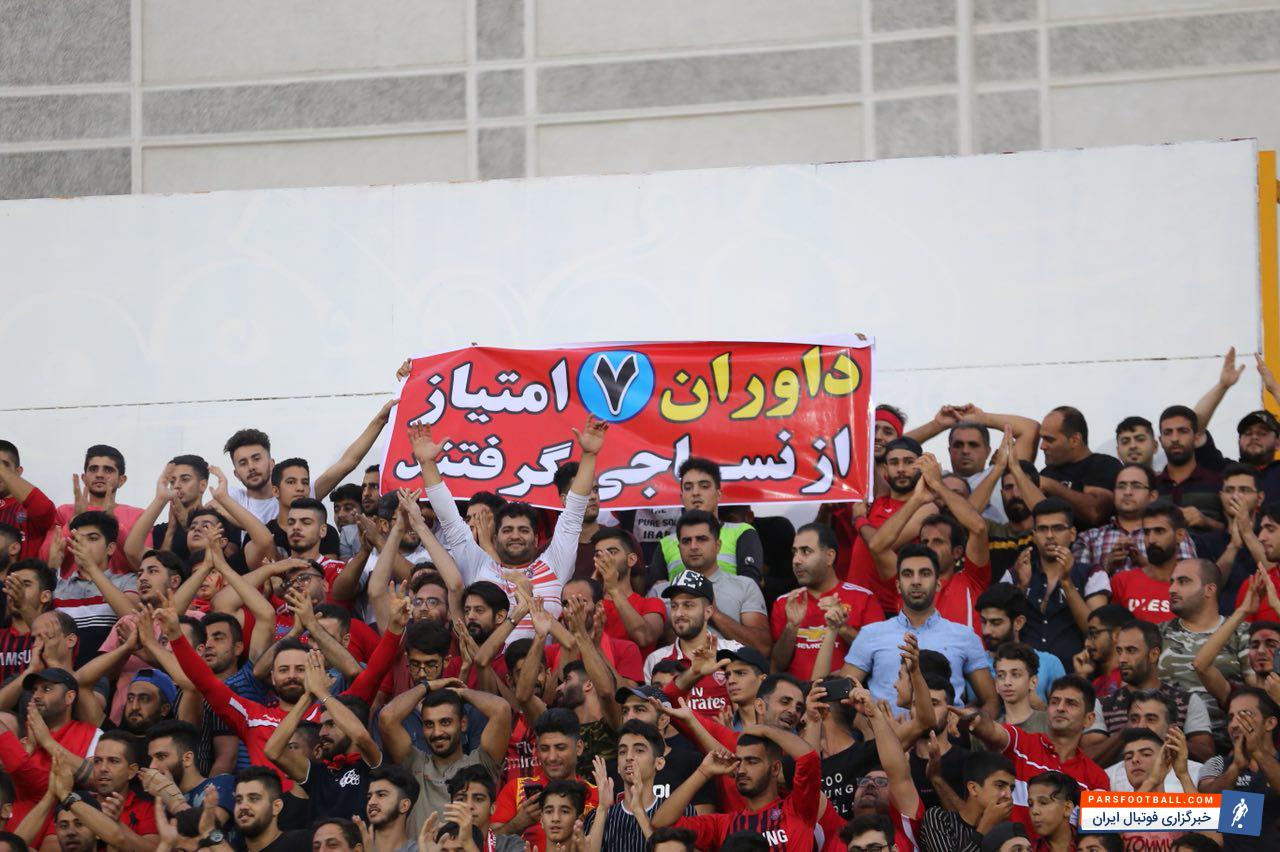 عکس؛ کنایه هواداران نساجی به کمیته داوران با تشویق علیرضا فغانی