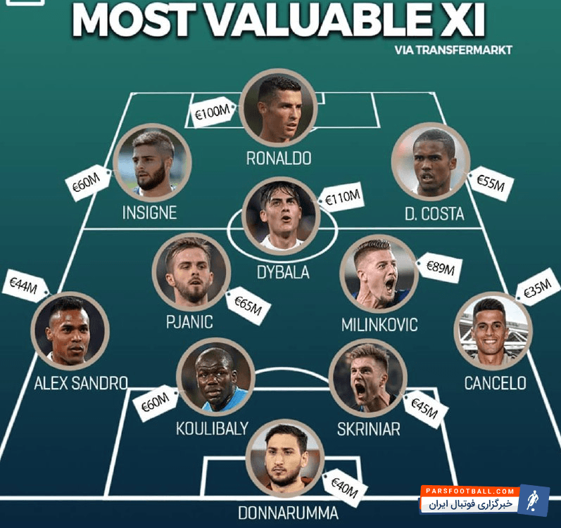 تصویر زیر نشان می دهد گرانقیمت ترین خریدهای تیمهای سری آ را نشان میدهد.