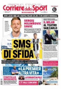 روزنامه کوریره دلو اسپورت ، شنبه ۲۵ آگوست ؛ پیام مهم ستاره لاتزیو برای رونالدو !