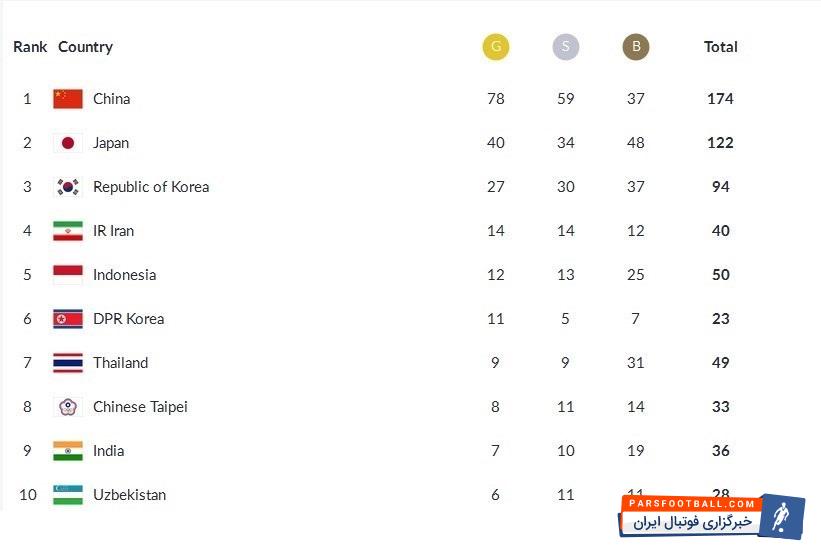 عکس ؛ ایران همچنان تیم چهارم بازی های آسیایی جاکارتا ۲۰۱۸