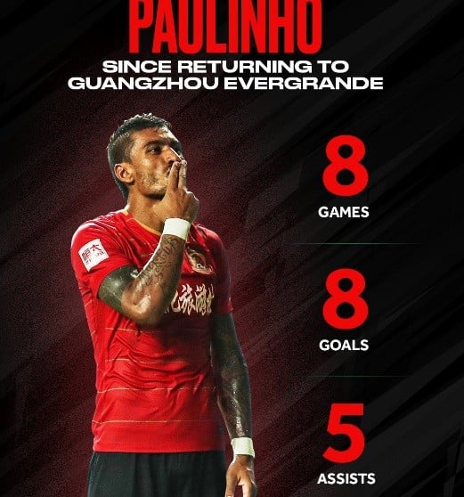 پائولینیو بار دیگر به سوپرلیگ چین بازگشت تا برای گوانگژو به میدان برود