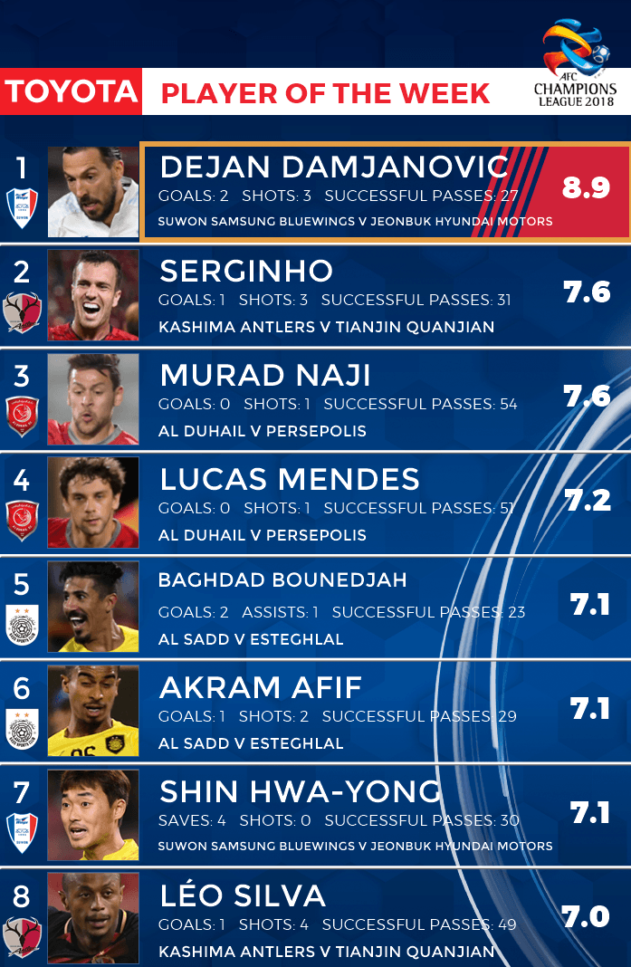 برترین بازیکنان دور رفت مرحله یک چهارم نهایی لیگ قهرمانان آسیا اعلام شد