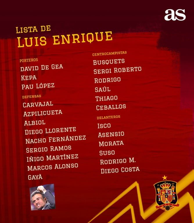 لیست تیم ملی اسپانیا به شرح زیر است: