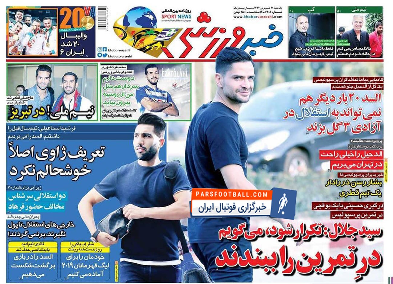روزنامه خبر ورزشی ، یکشنبه ۱۱ شهریور ؛ درگیری “سید جلال حسینی” با یک بوقچی در تمرین پرسپولیس