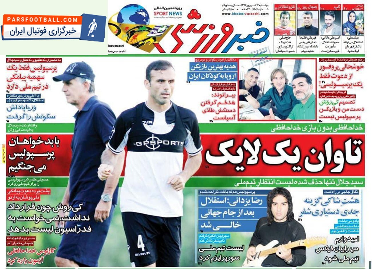 روزنامه خبر ورزشی ، دوشنبه ۱۲ شهریور ؛ تاوان یک لایک !
