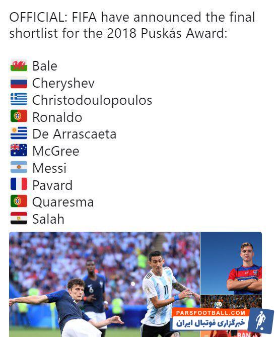 فیفا امروز نامزدهای کسب بهترین عناوین سال از مربی تا بازیکن را در بخش های مختلف آقایان و بانوان اعلام کرده و برای کسب جایزه پوشکاش که فصل گذشته به ژیرود مهاجم فرانسه رسید نیز ۱۰ گل نامزد شده اند.