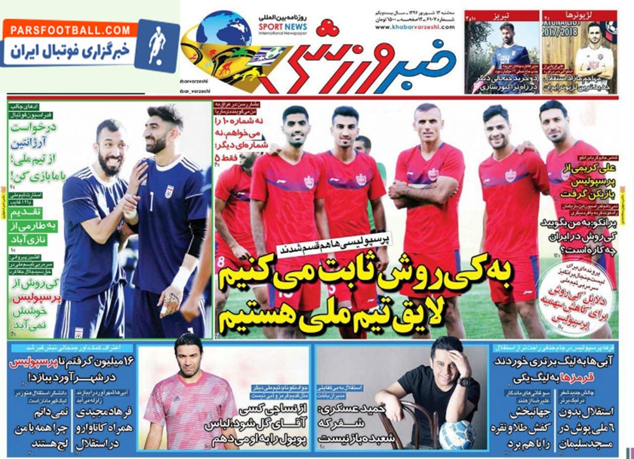 عناوین روزنامه خبر ورزشی روز سه شنبه ۱۳ شهریور به شرح زیر است :