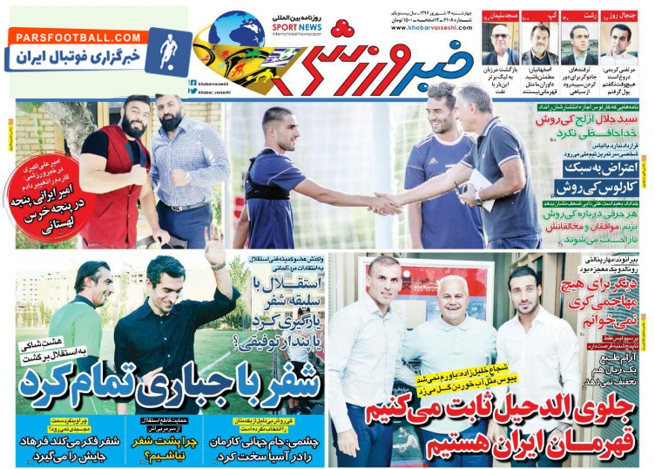 روزنامه خبر ورزشی ، چهارشنبه ۱۴ شهریور ؛ هشت شاکی به استقلال برگشت !