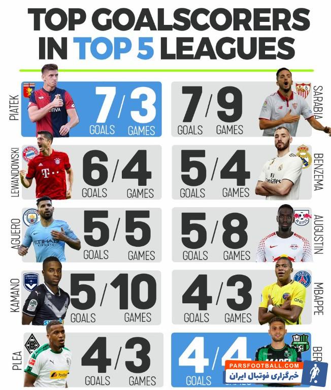رونالدو غایب بزرگ ۱۰ گلزن برتر ۵ لیگ معتبر اروپا تا قبل از کریسمس + عکس