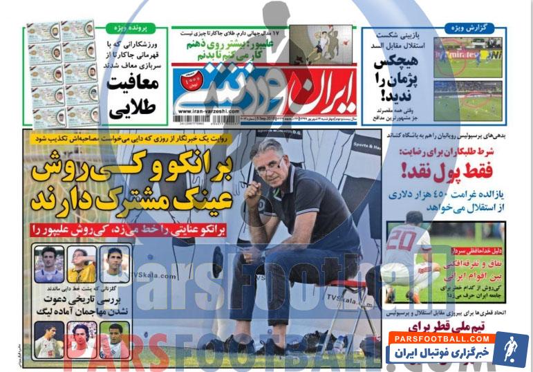 نگاهی به روزنامه ایران ورزشی ۱۴شهریور ۹۷؛عینک مشترک برانکو و کی روش