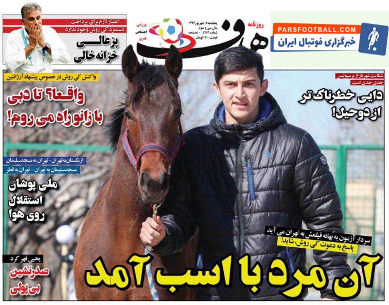 روزنامه هدف ورزشی ، پنجشنبه ۱۵ شهریور ؛ آزمون پاسخ دعوت کی روش را داد !