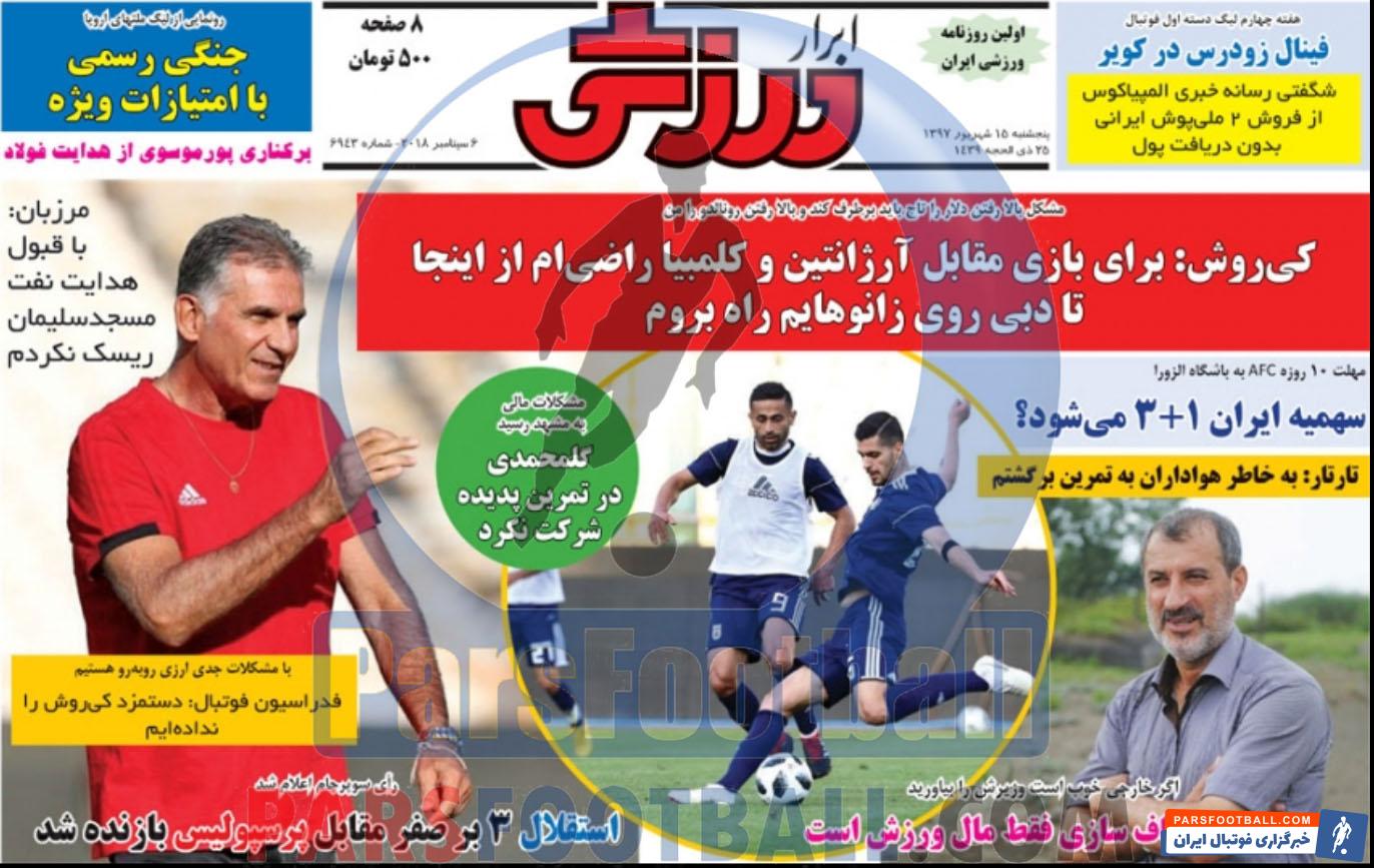 عناوین روزنامه ابرار ورزشی پنجشنبه ۱۵ شهریور به شرح زیر است :