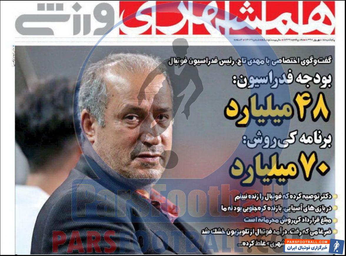 عناوین روزنامه همشهری ورزشی پنجشنبه ۱۵ شهریور به شرح زیر است :