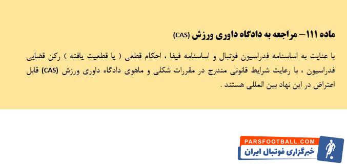در آیین نامه انضباطی جدید فدراسیون فوتبال شکایت تیم ها به دادگاه بین المللی ورزش پیش بینی شده است در حالی که پیش تر تیم ها از این حرکت منع شده بودند.