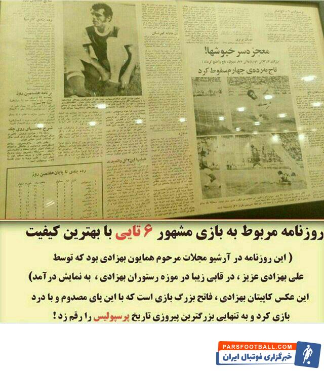 امروز اما در سالروز این دیدار برخی از هواداران پرسپولیس تصاویر زیر را که پیش از این کمتر منتشر شده است در فضای مجازی به اشتراک گذاشتند تا یاد این دیدار و همایون بهزادی زننده ۳ گل از ۶ گل این مسابقه را زنده نگه دارند.