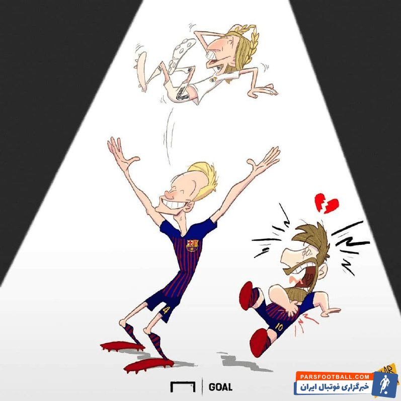 عکس؛ کارتون؛ حمایت یک بارسایی از ستاره رئالی ها در مقابل مسی