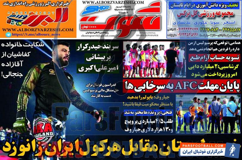 عناوین روزنامه شوت یکشنبه ۱۸ شهریور به شرح زیر است :