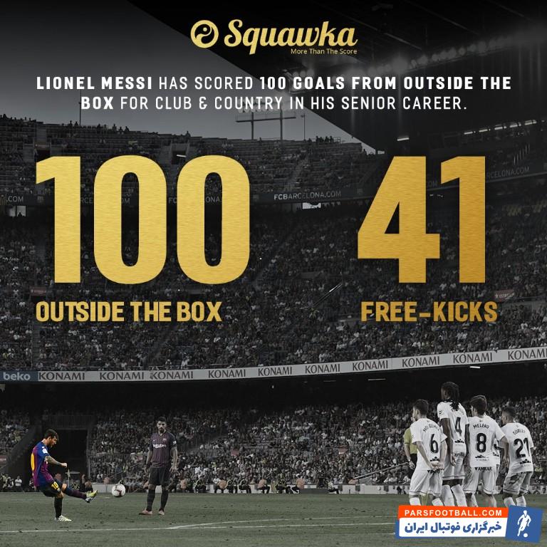 فوق ستاره بارسلونا ۱۰۰ گل از بیرون از محوطه جریمه به ثمر رسانده و دروازه حریفان را گشوده است.