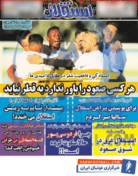 نگاهی به روزنامه استقلال جوان پنجشنبه ۲۲ شهریور ۹۷ ؛ ایستادگی و قاطعیت شفر در مقابل ناامیدی ها؛ فتح الله زاده سفره دلش را باز کرد