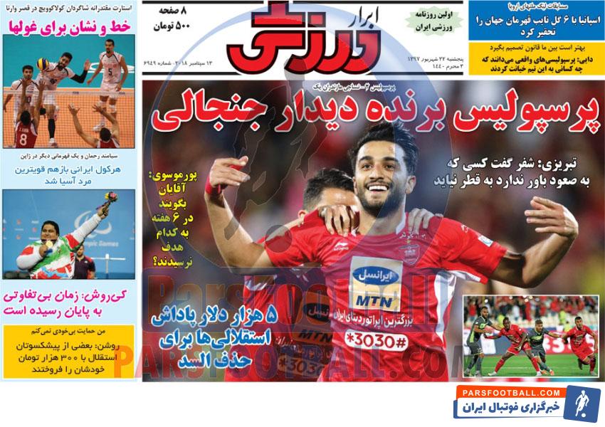 عناوین روزنامه ابرار ورزشی پنجشنبه ۲۲ شهریور به شرح زیر است :