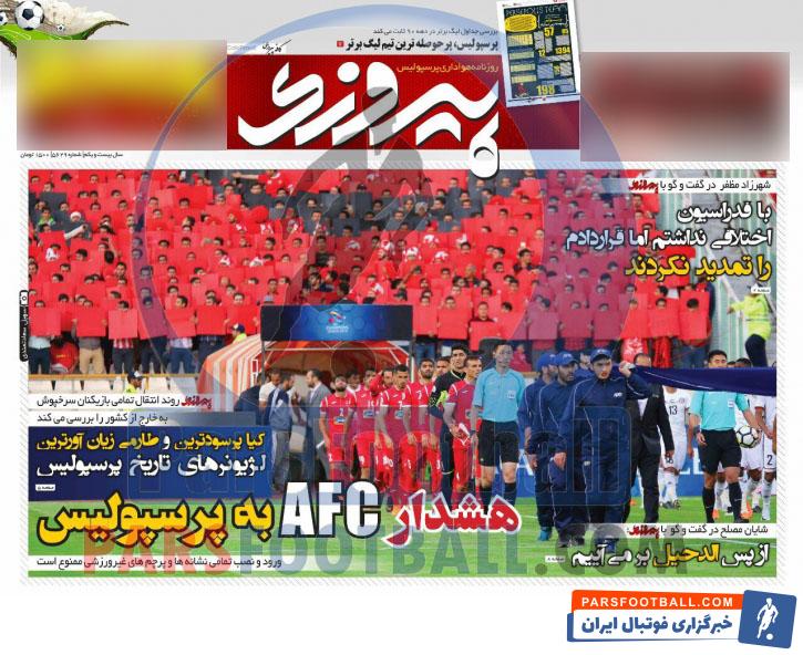 نگاهی به روزنامه پیروزی شنبه ۲۴ شهریور ۹۷؛ مصلح به هواداران قول پیروزی داد؛ AFC به پرسپولیس هشدار داد