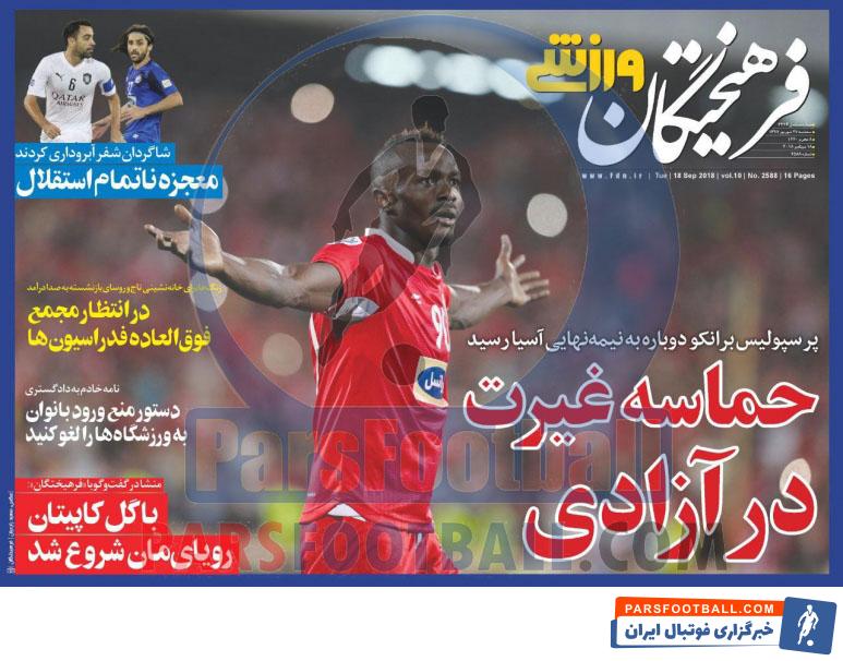 عناوین روزنامه فرهیختگان ورزشی سهشنبه ۲۷ شهریور به شرح زیر است :