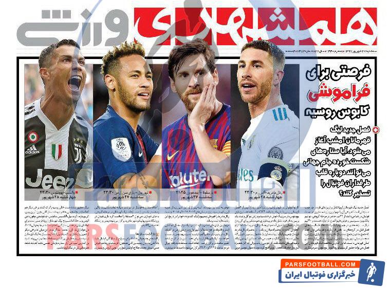 عناوین روزنامه همشهری ورزشی سهشنبه ۲۷ شهریور به شرح زیر است :