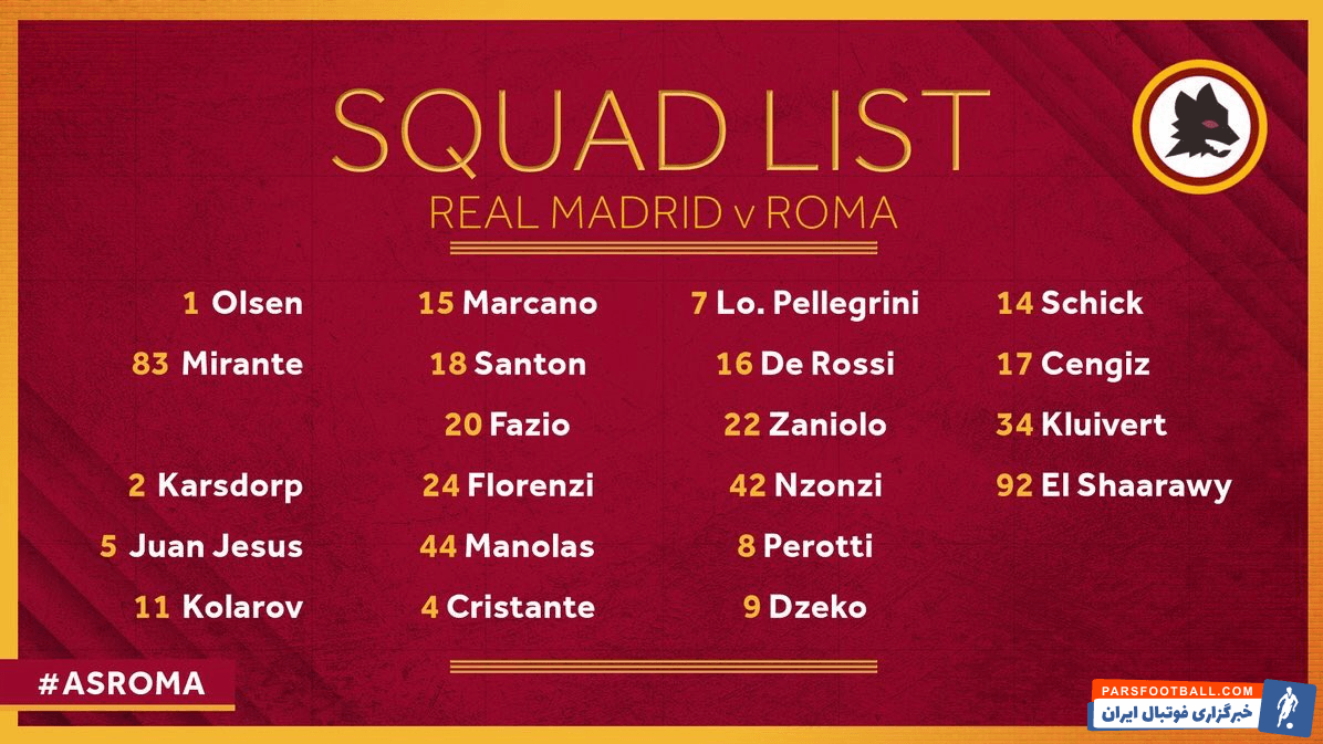 عکس ؛ لیست بازیکنان رم برای دیدار حساس با رئال
