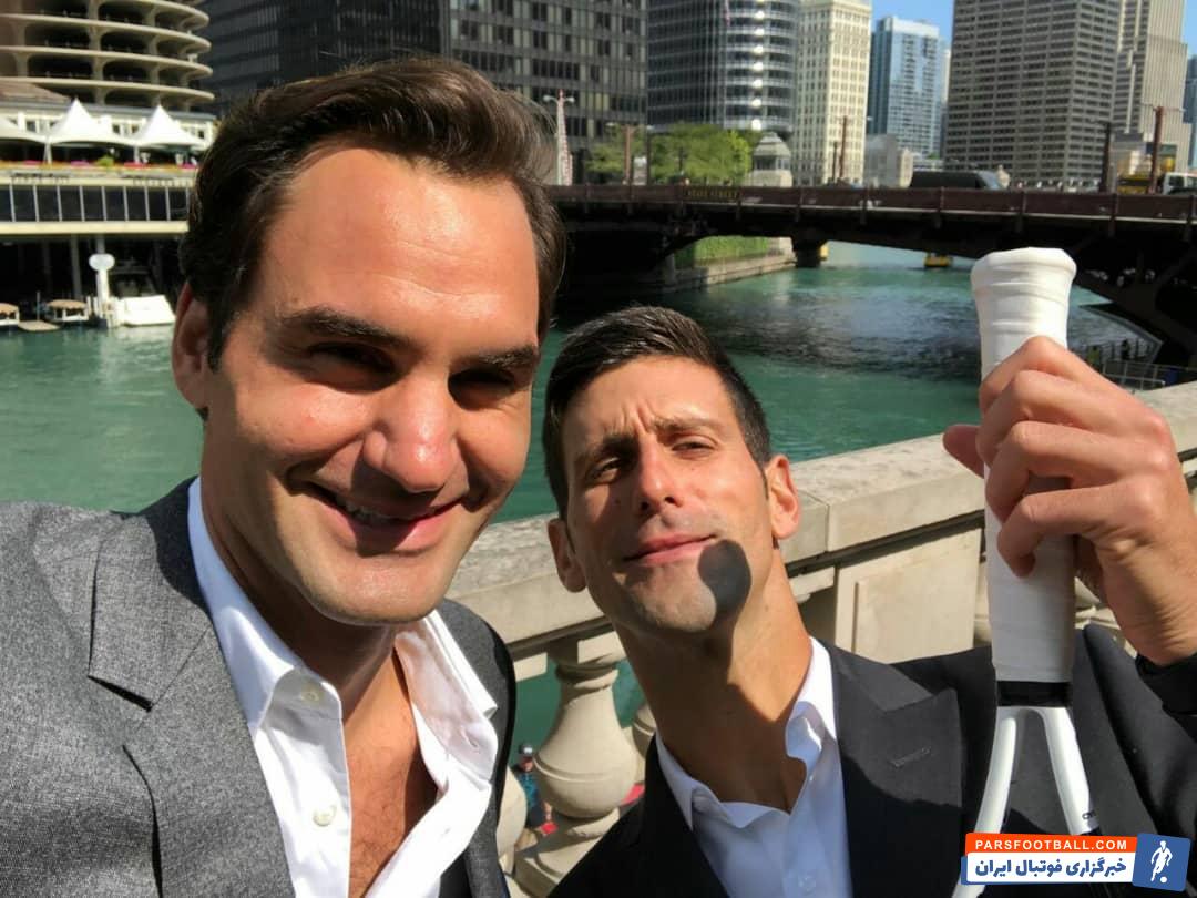 تصویری از سلفی راجر فدرر و جوکوویچ در شیکاگو را مشاهده می کنید .