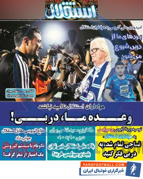 نگاهی به روزنامه استقلال جوان یکشنبه ۱ مهر ۹۷ ؛ وعده ما دربی!؛ توصیه وریا غفوری به هواداران استقلال؛ نکونام با سیستم کی روشی یه امتیاز گرفت