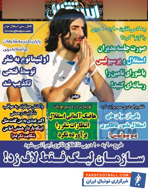 نگاهی به روزنامه استقلال جوان سهشنبه ۳ مهر ۹۷؛ سورپرایز شفر برای دربی لو رفت؛ واکنش میناوند به عواقب شکایت رحمتی؛ چه کسی قانون ۹۰ به ۱۰ دربی را “وتو” کرد؟