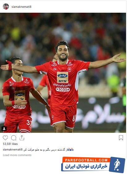 سیامک نعمتی بازیکن تیم فوتبال پرسپولیس تهران پس از دربی ۸۸ که با نتیجه تساوی به پایان رسید پست جدیدی در اینستاگرام خود منتشر کرده است .