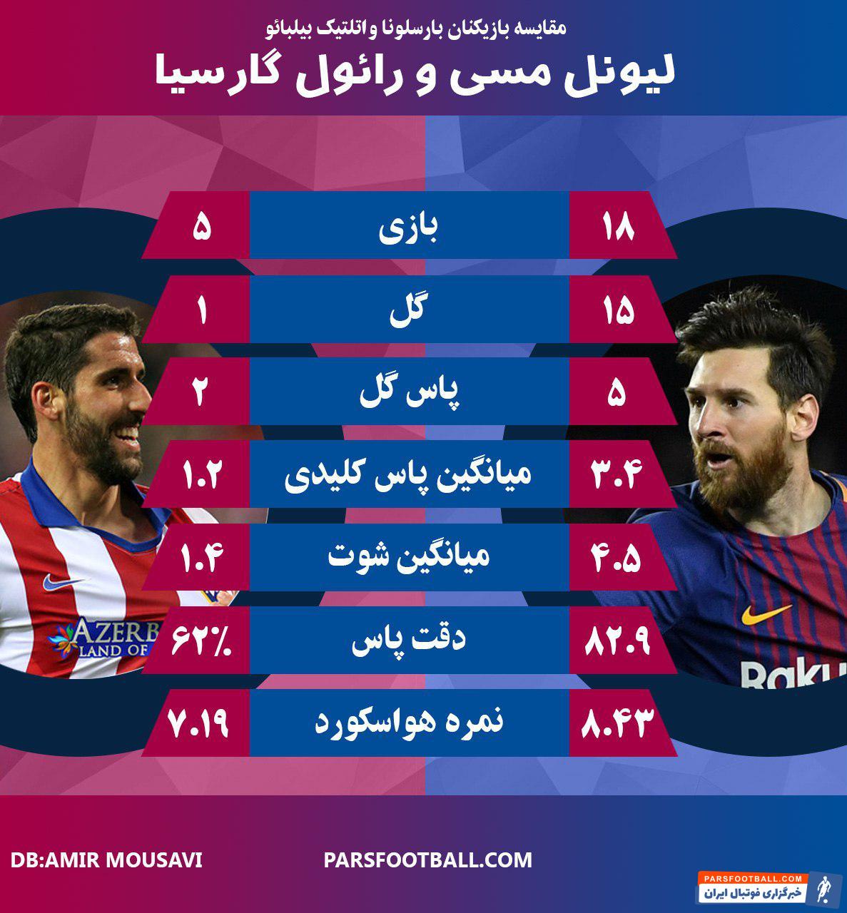 اینفوگرافی اختصاصی؛ مقایسه عملکرد لیونل مسی و رائول گارسیا، دو بازیکن بارسلونا و اتلتیک بیلبائو
