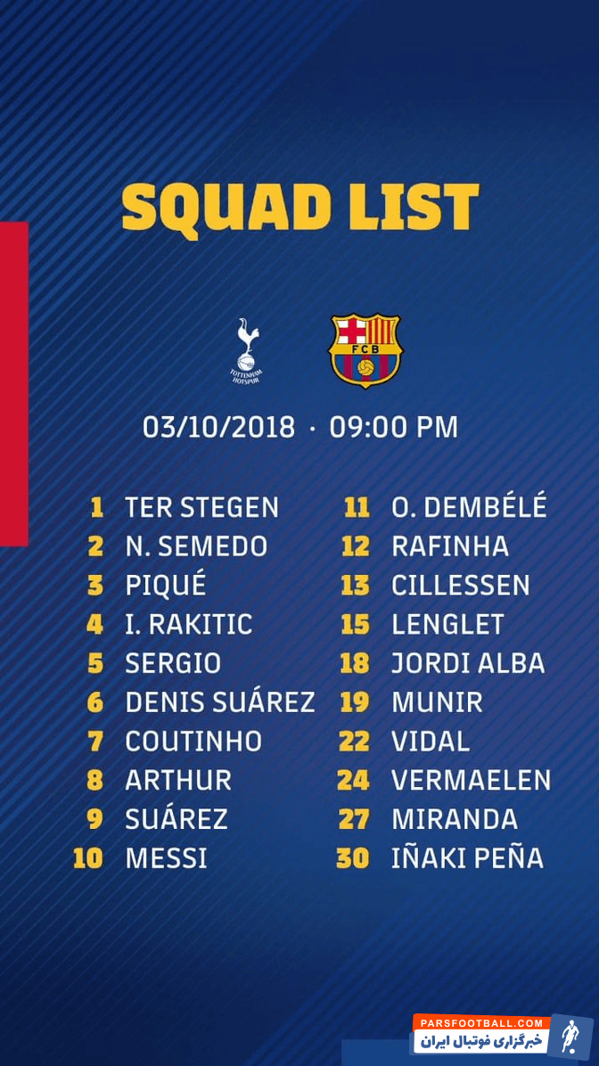عکس ؛ لیست اروپایی بارسلونا برای دیدار با تاتنهام