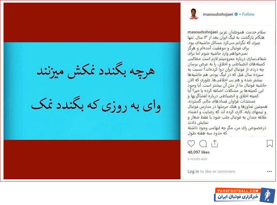 صدور این حکم به شدت کاپیتان تیم ملی و تراکتورسازی را خشمگین کرد تا جایی که او با انتشار پستی تند در صفحه اینستاگرام خود به این محرومیت واکنش نشان داد و انتقادات تندی از کمیته انضباطی و کمیته اخلاق فدراسیون فوتبال بر زبان آورد که می تواند بر جنجال های اخیر بیافزاید. در پست اینستاگرامی مسعود شجاعی آمده است: