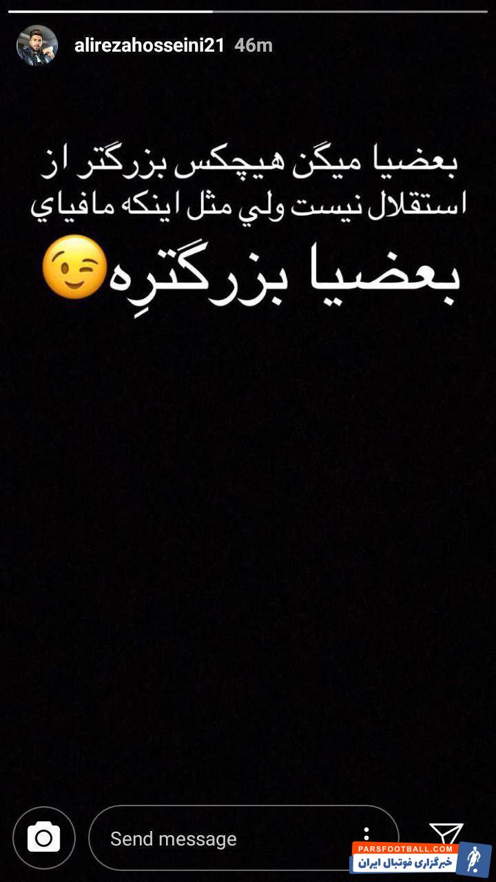 برادر سید حسین حسینی دروازه بان جوان استقلال استوری عجیبی را در اینستاگرام منتشر کرد. تصویری از استوری او را در ادامه مشاهده می کنید :
