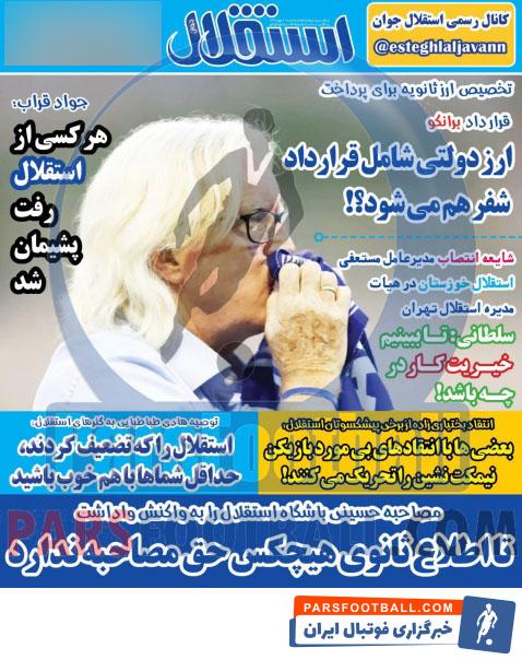 نگاهی به روزنامه استقلال جوان سهشنبه ۱۷ مهر ۹۷؛ مصاحبه حسینی باشگاه استقلال را به واکنش واداشت؛ انتقاد بختیاری زاده از برخی پیشکستوتان استقلال؛ توصیه های طباطبایی به گلرهای استقلال