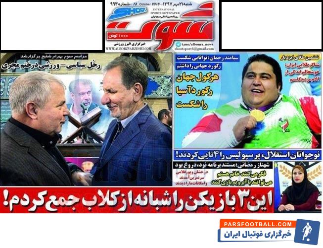 عناوین روزنامه شوت شنبه ۲۱ مهر به شرح زیر است :