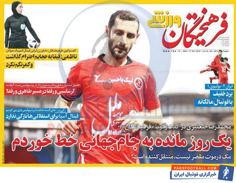 عناوین روزنامه فرهیختگان ورزشی چهارشنبه ۲۵مهر ماه به شرح زیر است :