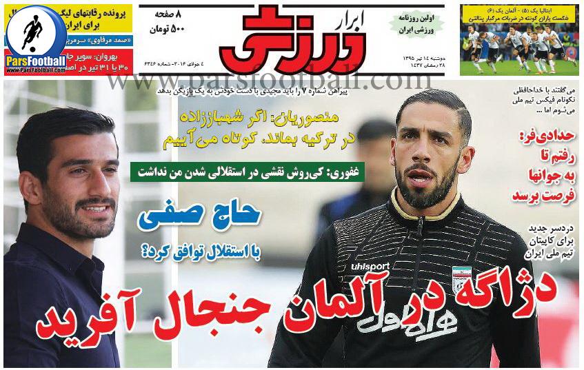 روزنامه ابرار ورزشی ۱۴ تیر | دژاگه در آلمان جنجال آفرید