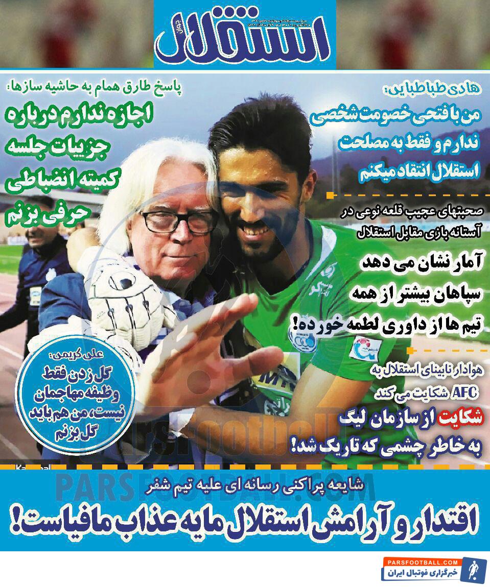 مروری بر مهمترین اخبار روزنامه استقلال جوان دوشنبه ۳۰ مهر ۹۷؛ واکنش ستاره عراقی استقلال به حاشیه سازها؛ شکایت هوادار استقلال از سازمان لیگ به AFC؛ افشاگری علیه وجود مافیا برای زمین زدن تیم شفر
